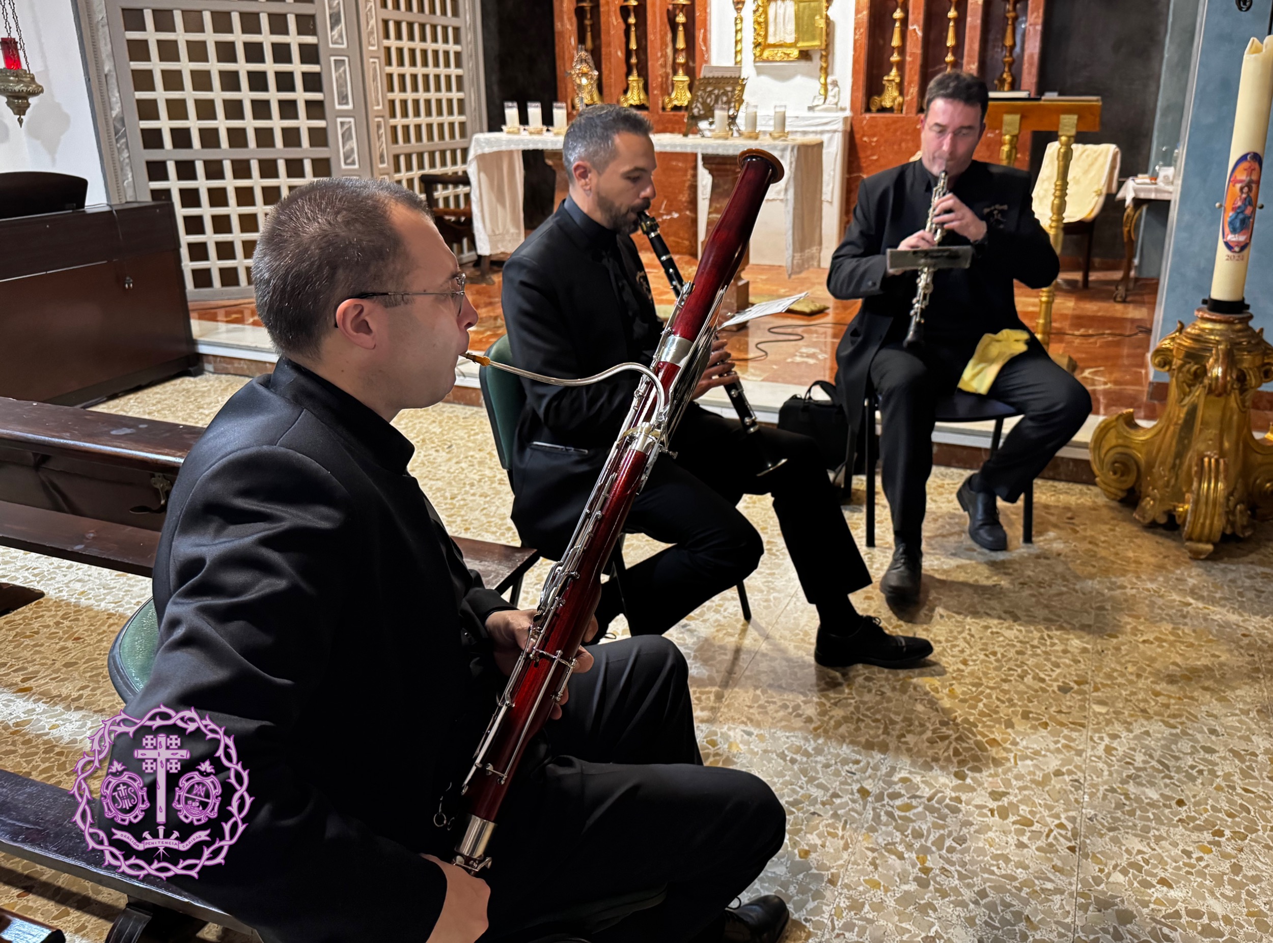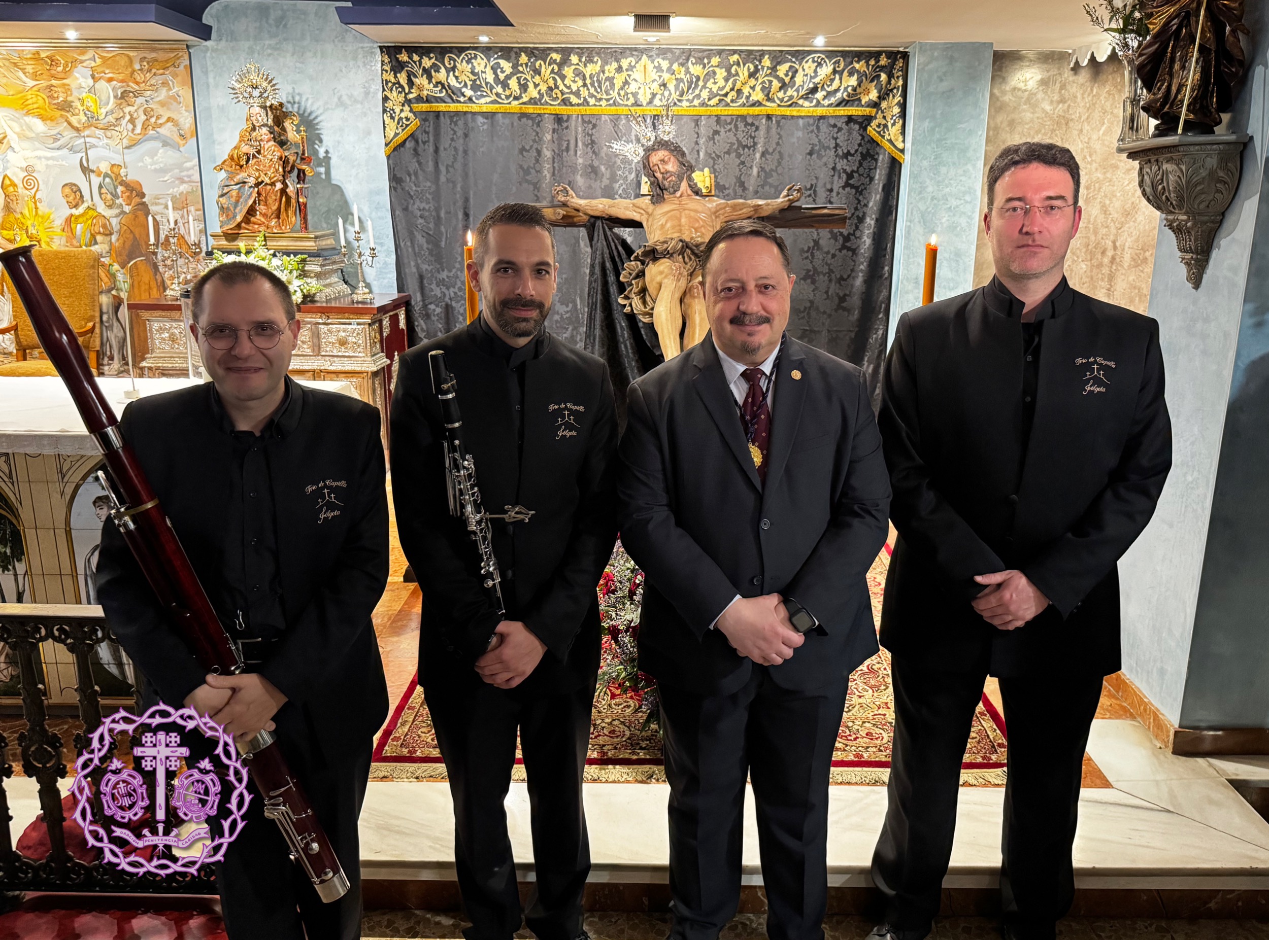Desde aquí, agradecer la presencia del Subdirector del Distrito de Triana y la del Presidente de nuestra querida Archicofradía de M.ª Auxiliadora de Triana, N.H.D. Francisco Alcaraz Guerrero. También agradecer el acompañamiento de nuestra querida Capilla Musical “Gólgota” por ser una vez más los sones del silencio y de la oración.