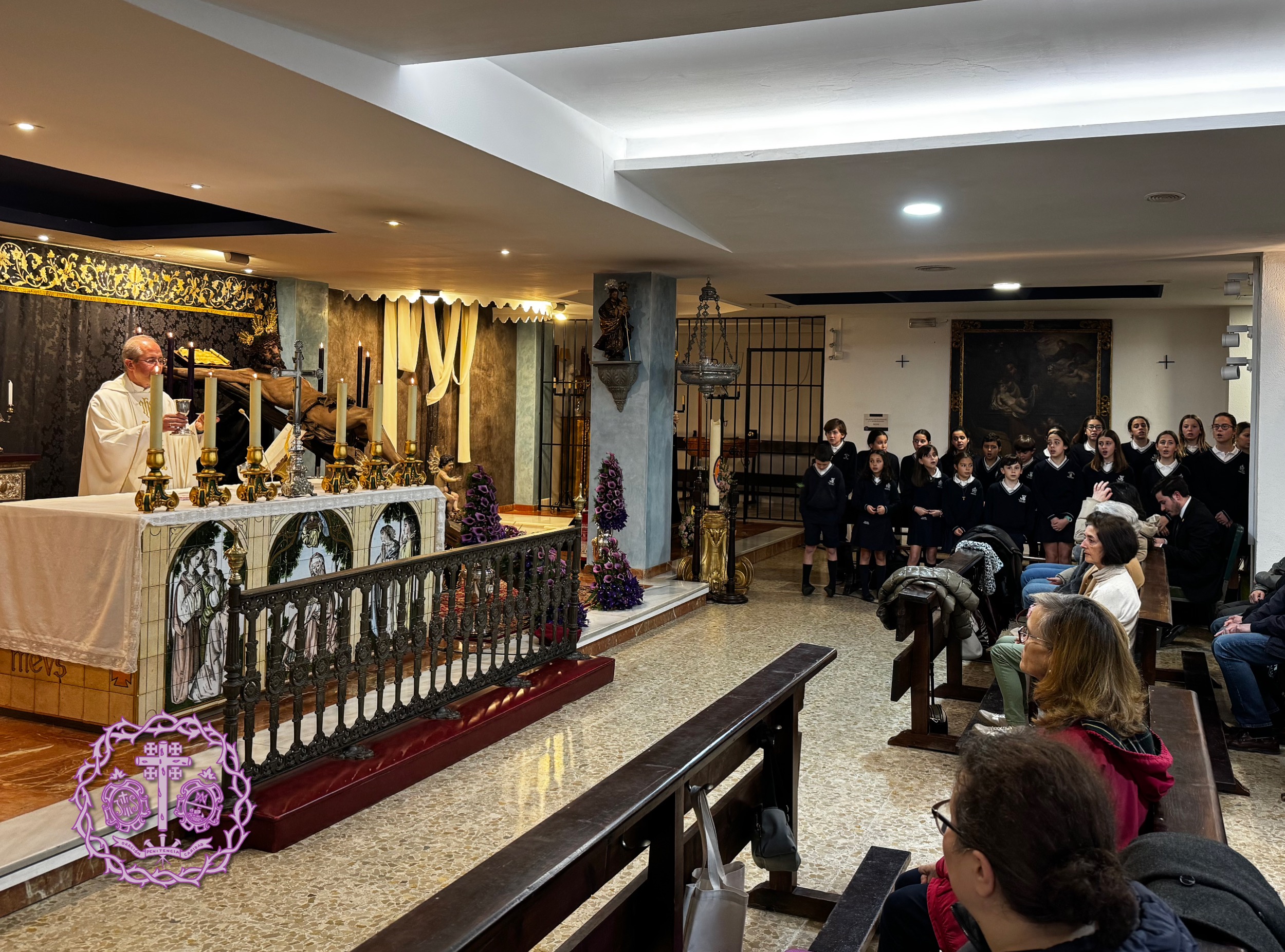 El pasado martes, 25 de marzo, durante el primer día de ejercicio de Solemne Quinario en honor al Stmo. Cristo de Pasión y Muerte, tuvimos el acompañamiento musical del Coro del Colegio Cristo Rey de Sevilla, por segundo año consecutivo.
